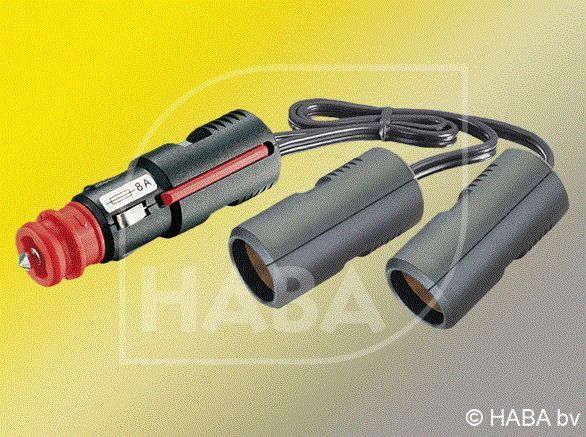 2V adapter universeel --> 2x universeel, met zekering 8A,