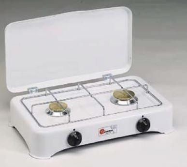 2 pits komfoor met deksel en draadtreef. Werkzaam op