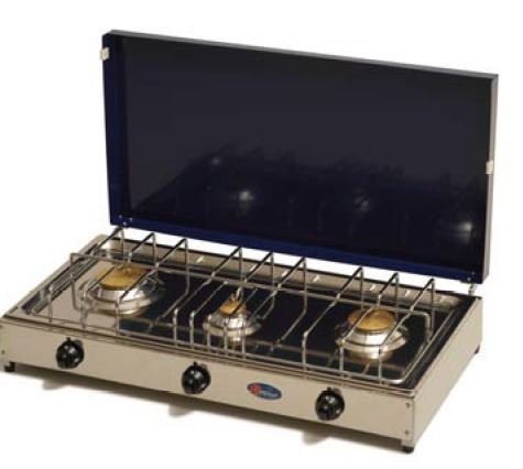 RVS 3 pits komfoor met deksel. Werkzaam op flessengas 30