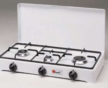 3 pits komfoor met deksel en emaille treef. Werkzaam op