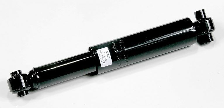 Universele asschokbreker van AL-KO. De uitgeschoven lengte is 345 mm, en ingedrukt is de lengte 250 mm. Het vermogen is 900 kg (enkelas) tot 2000 kg (tandemas).