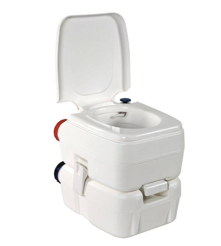 Het stevige Bi-Pot toilet is geheel autonoom, met schoonwatertoevoer, hygiënisch en geurvrij. Heel eenvoudig schoon te houden. Compact en helemaal uit elkaar te halen zelfs het ventiel, voor een grondige en algehele schoonmaak. Sterk en stevig handvat voor gemakkelijk vervoer. Grote afvoerknop: zonder lastige slangen, op eenvoudige en hygiënische manier te legen, geen verstoppingen. Elke tank is elektronisch op stevigheid getest. Handige haken aan de zijkant die de onderkant aan de bovenkant verbinden.