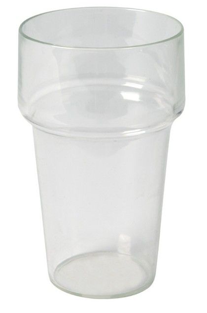 Set van 4 kunststof bierglazen met kraag, stapelbaar. Afmetingen: diameter 7cm; hoogte 11,5cm. Inhoud: 250ml. In fraaie verpakking.