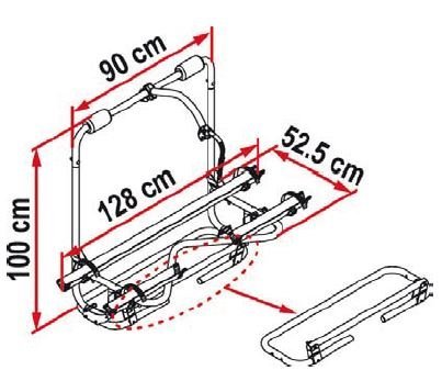 Fietsenrek geschikt voor de standaard caravandissel,voor de Hobby caravan met brede dissel en voor het nieuwe Alko chassis.Standaard geleverd met 2 wielgoten. Een derde wielgoot is als optie mogelijk.
