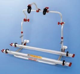 Fietsenrek geschikt voor alle Laika campers. Standaard geleverd met twee wielgoten en Bike Block Pro 1 en 3. Een derde en vierde wielgoot zijn als optie mogelijk. Maximaal draagvermogen 60 kg.