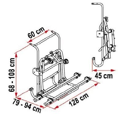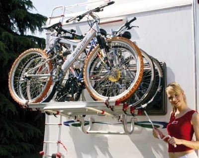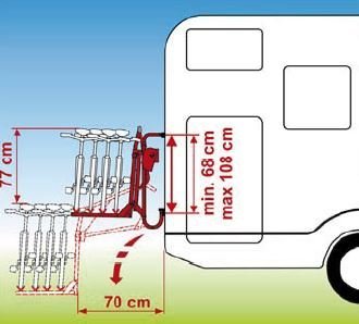 Het enige fietsenrek dat maar liefst tot 77 cm naar beneden kan zakken om het op- en afladen van de fietsen gemakkelijker te maken. Voorzien van veiligheidsriemen die een per ongeluk losschieten voorkomen. Standaard geleverd met twee wielgoten en Bike Block Pro 1 en 3. Een derde en een vierde wielgoot zijn als optie mogelijk. Maximaal draagvermogen 60 kg. Inclusief draaislinger voor het opdraaien van het fietsenrek. Tüv-goedgekeurd.