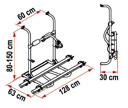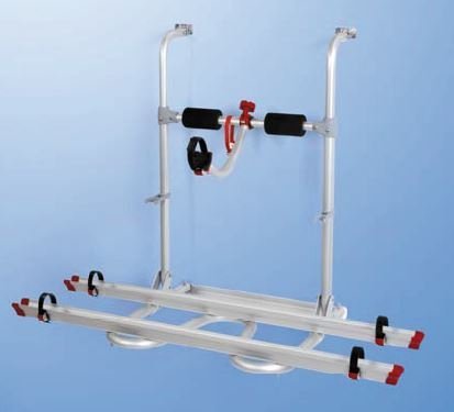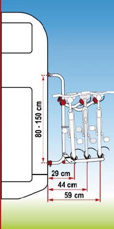 Universeel fietsenrek geschikt voor de achterwand van het voertuig. De Best-Seller van Fiamma! Verbeterd model, de draagkracht is nu 55 kg! Voorzien van Quick-Safe vastzet strips. Inclusief één Bike Block Pro 3 en één strip. Standaard geleverd met 2 wielgoten. Een derde wielgoot is als optie mogelijk, deze wordt tussen de twee reeds bestaande wielgoten geplaatst. In hoogte verstelbaar van 80 – 150 cm. Verkrijgbaar met rode en blauwe kunststof delen.