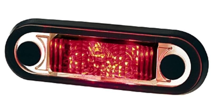 LED Contourverlichting voor horizontale of verticale inbouw. Helder glas met 2 rode LED's. 8-28V, 12V/0,5W afm 79x 25,9mm.
