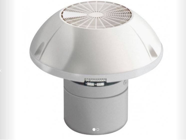 Deze krachtige gemotoriseerde dakventilator met twee snelheden zorgt zelfs voor ventilatie als de motor is uitgeschakeld.