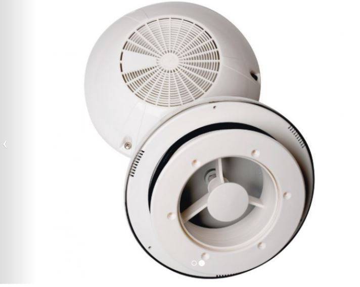 Hij ventileert geluidloos omdat de ventilator op luchtdruk werkt.