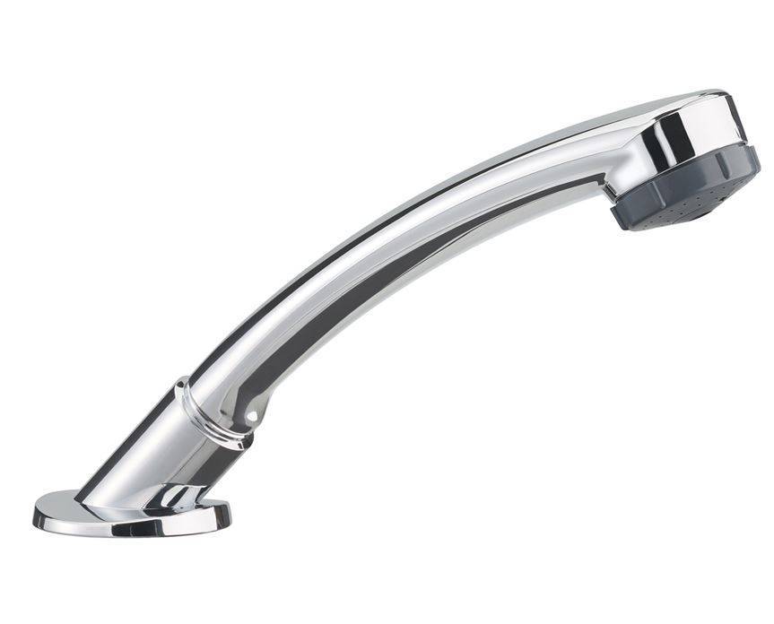 Geschikt voor montage in blad. Stelring t.b.v. straal-, douche-, stopinstelling. Voorzien van slang 1,5 m. Aansluiting 3/8