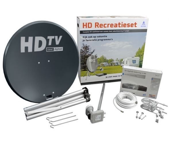 Volledige digitale satelietset. Set bestaat uit : satelietschotel met inklapbare LNB arm (doorsnede 65 cm) Universele LNB , statiefvoet en satfinder.