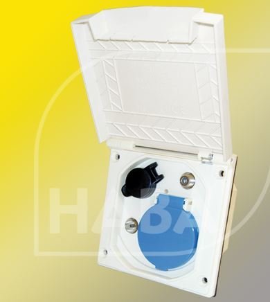 wit, zonder kabel, met nieuw model deksel, 100x100mm 230 Volt + 12 Volt + Antenne + Satellite;