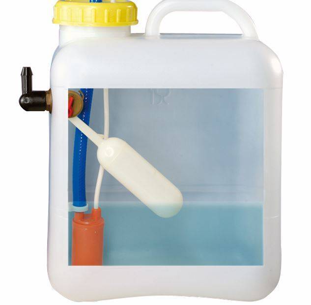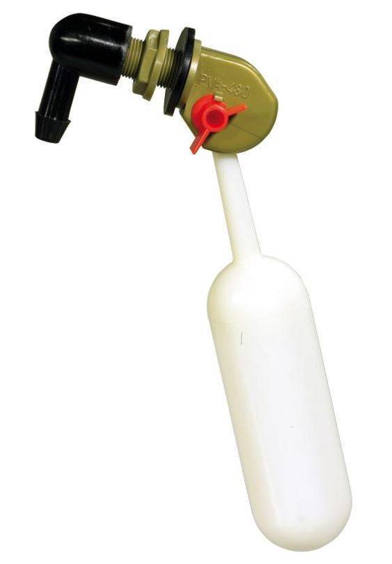 Slangpilaar 90- 3/8 buiten aan de tank/jerrycan. Zelf eenvoudig in te bouwen flotter schakelt de watertoevoer van het waterleidingnet af zodra het ingestelde niveau is bereikt. Zakt de waterspiegel dan opent de flotter zichzelf. Het niveau is eenvoudig af te stellen en de afstelling ligt boven het waterpeil.