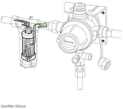 Beschermd gasdrukregelaar en kranen tegen verontreiniging en oliesmeer. De gasfilter wordt voor de gasdrukregelaar gemonteerd. Hij filtert verdampingsresten (olie-aërosolen) uit de gasstroom, voordat deze neerslaan en de regelaar verstoppen. En dat tot 99 % (gangbare papierfilters filteren in dit bereik hoogstens 30 %). voor een perfecte werking en een lange levensduur.