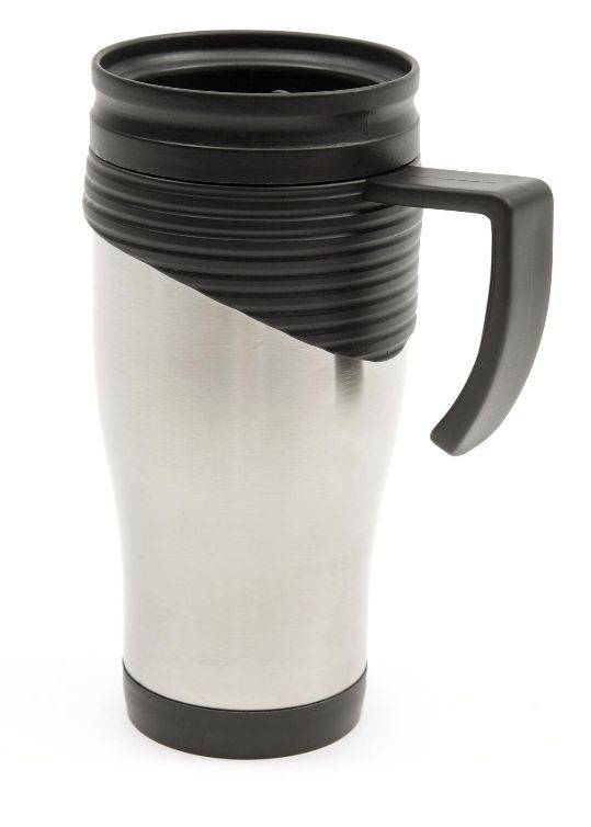 Dubbelwandige vacuüm RVS autobeker met kunststof handvat en deksel met drinktuit. Past in vrijwel iedere blikjeshouder van vrijwel elk model auto. Afmetingen: diameter 6,5cm; hoogte 16,7cm. Gewicht: 150 gram. Inhoud: 400ml.