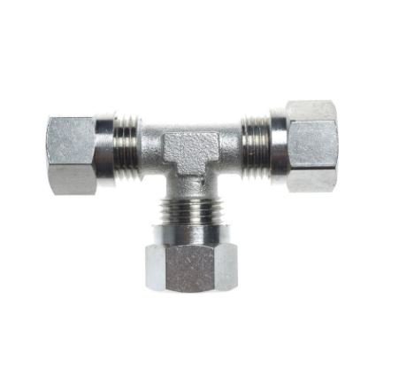 Knelkoppeling verloop T-stuk 10 x 8 x 10 mm staal