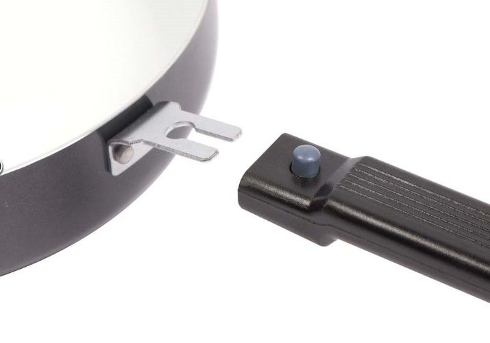 Ruimtebesparende hoogwaardige aluminium pan met ceramische anti-aanbaklaag en afneembare steel. Afmetingen: diameter 24cm; hoogte 4cm; dikte 2,2mm. Kleur: zwart en wit.