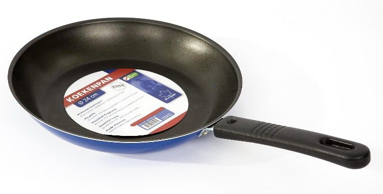 Aluminium koekenpan met anti-aanbaklaag en afneembare steel. Afmetingen: diameter 24cm; hoogte 4cm. Kleur: blauw.