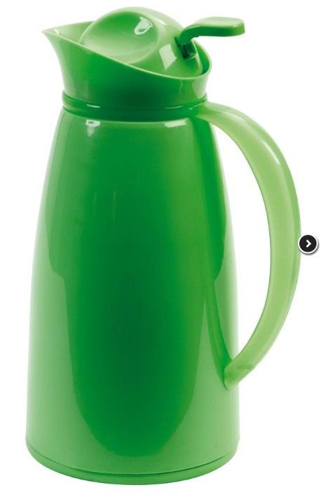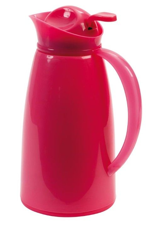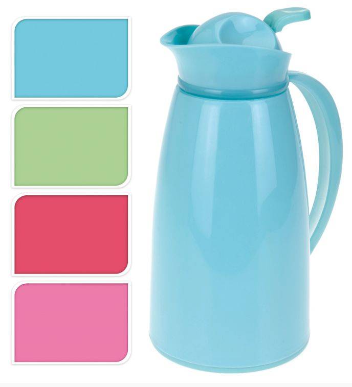 Vacuüm koffiekan met handvat, glazen binnenfles. Afmetingen (LxBxH): 16x13x26cm. Gewicht: 500 gram. Inhoud: 1 liter. Kleuren assorti.