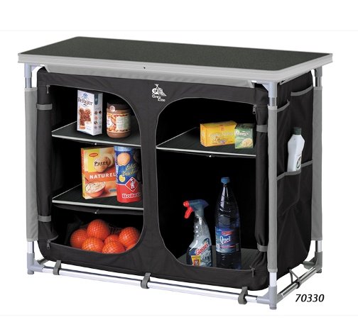 Multifunctioneel kookeiland met een extra groot hittebestendig werkblad dat ook goed dienst kan doen als commode.