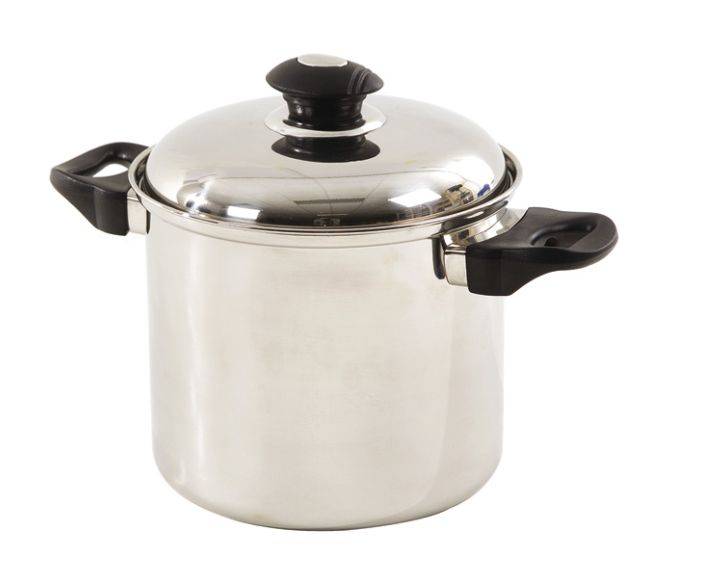 Luxe RVS pan met fraaie hittebestendige handgrepen. Bij uitstek geschikt voor de beperkte ruimte op gaskomforen. Afmetingen: diameter 14cm; hoogte 13cm. Inhoud: 2 liter.