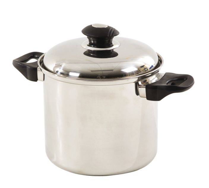 Luxe RVS pan met fraaie hittebestendige handgrepen. Bij uitstek geschikt voor de beperkte ruimte op gaskomforen. Afmetingen: diameter 16cm; hoogte 15cm. Inhoud: 3 liter