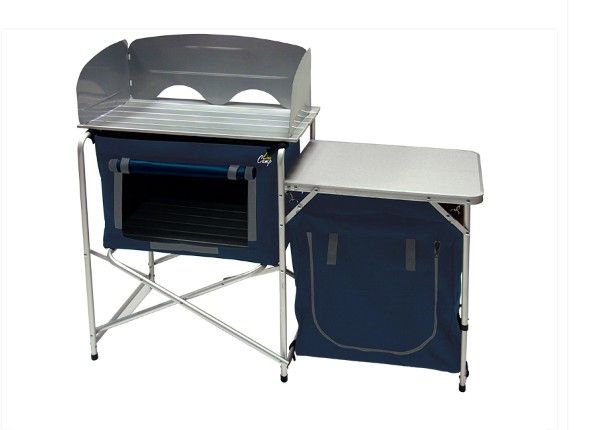 De Line Camp kooktafel is voorzien van 2 opbergkasten, een aluminium werkblad en een zijblad. Genoeg ruimte om alle lekkere vakantie gerechten op te bereiden.
