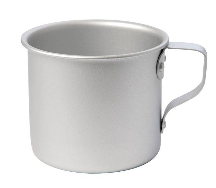 Aluminium kroes. Afmetingen: diameter 8cm, hoogte 7cm. Inhoud: 300ml.
