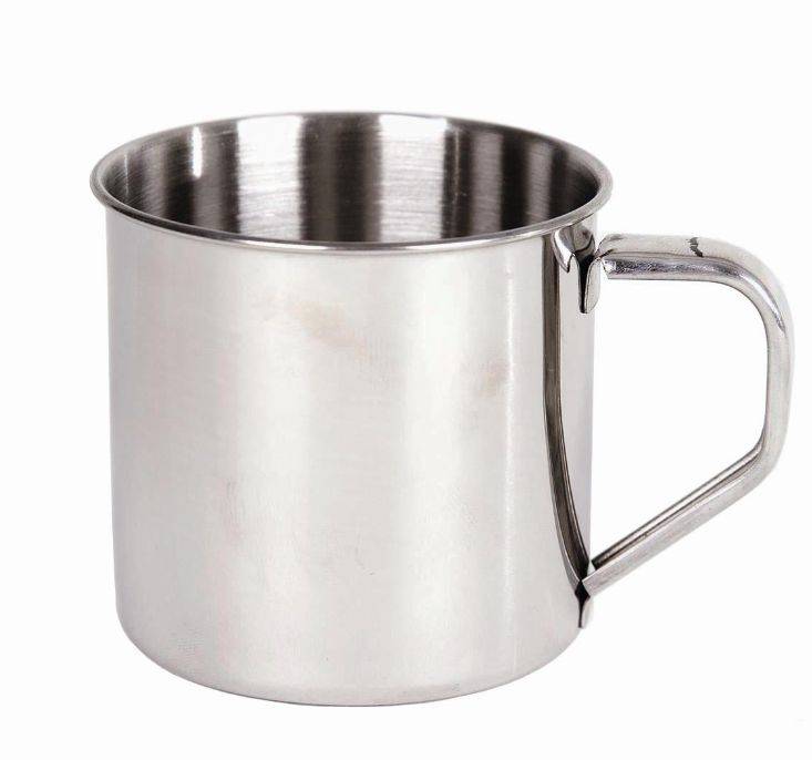 RVS kroes. Afmetingen: diameter: 7cm, hoogte 7,5cm. Inhoud: 300ml