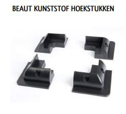 Set van vier kunststof hoekstukken voor de bevestiging van een daglichtpaneel. Set van 4 stuks. Verkrijgbaar in de kleuren zwart en wit.