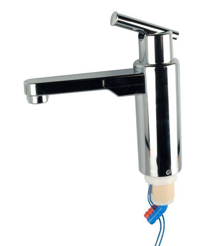 Mengkraan (EHM) voor een perfecte waterstraal: Geschikt voor warmwater: Drukbestendig tot 5 bar: Automatische schakelaar tot 3 A; Uitloop 360° draaibaar; Verchroomt; Keramische cartouche; Gatmaat ø 34 mm; Hoogte: 175 mm; Uitloop: 130 mm; Leverbaar met 30 cm slangaansluiting of met tulen.