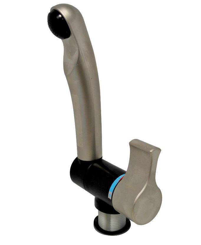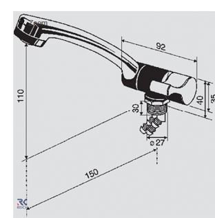 Met vertikaal zwenkbare uitloop. Deze kraan met een goede prijs-kwaliteitsverhouding en modern design is met een inbouwhoogte van slechts 40 mm zeer geschikt voor inbouw op krappe plaatsen. De kraan is voorzien van een 4 A microschakelaar en derhalve geschikt voor zowel druk- en dompelpompen. Boorgat ø 27 mm. Maximale waterdruk: 3 bar.
