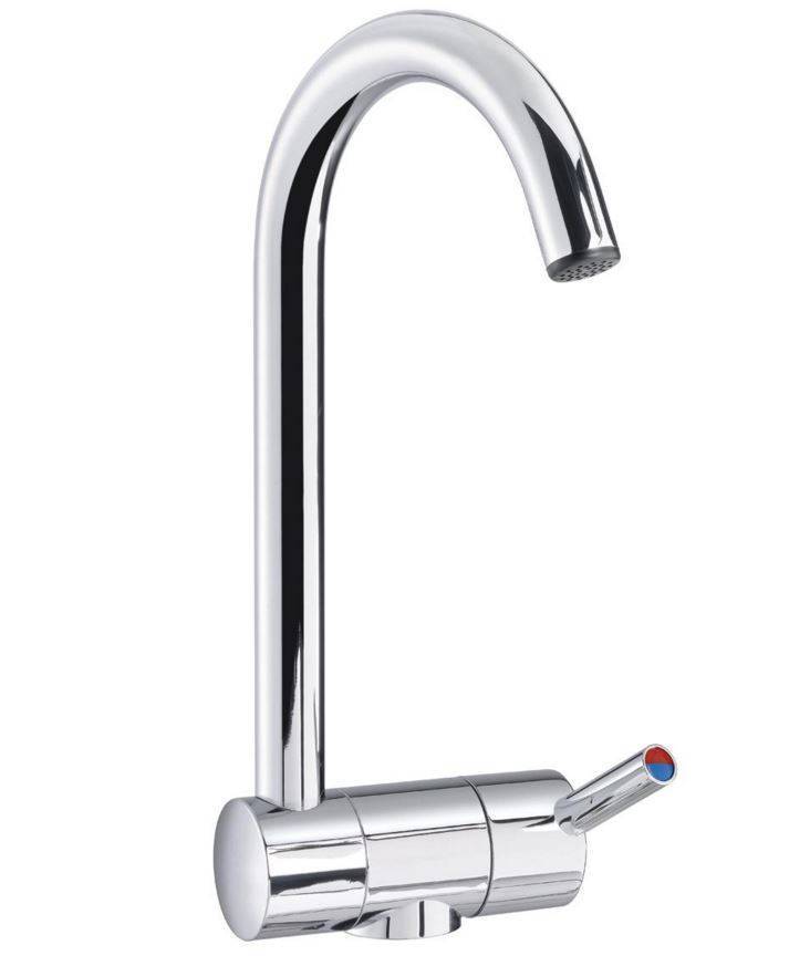 Met een gebogen uitloop. Deze elegante en moderne kraan is met een inbouwhoogte van 40 mm uitstekend geschikt voor inbouw in een wasbak. Bladdoorvoer 30 mm. Maximale druk 3 bar. Schakeling 4 Amp max. Boorgat 27 mm.
