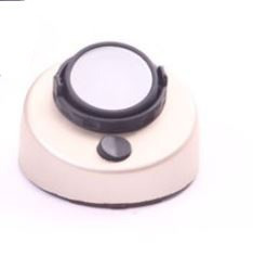 Taps toelopend. Voorzien van een aan en uit schakelaar. Voor o.a. Knaus/Fendt en Chateau. Voetplaat doorsnede 85mm. Hoogte 50mm. Kleur oud zilver.