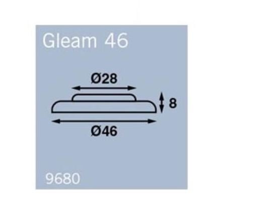 Opbouwspot Glean 46 is voorzien van 3 LED's. 1,3Watt. 12Volt. Voetplaat rond doorsnede 46mm. Hoogte 8mm.