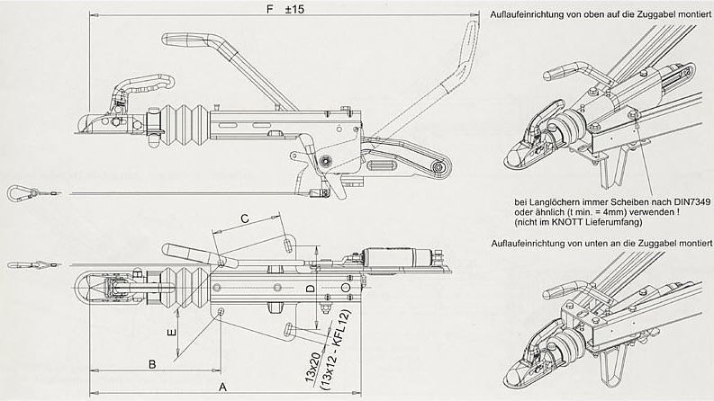 Oplooprem van Knott voorzien van een neuswielconsole Last: 750-1300 kg