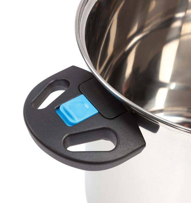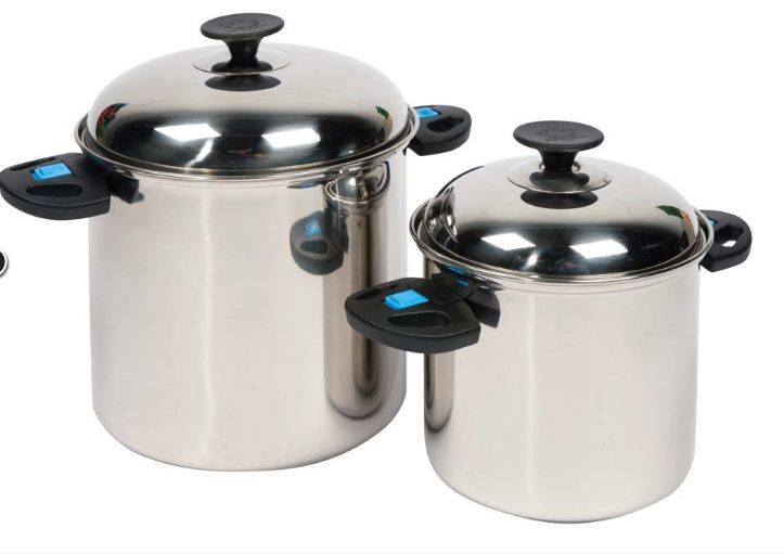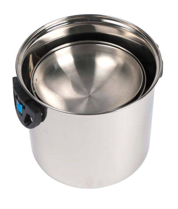 Luxe RVS 2-delige kookset. Compleet nestbaar, dus zeer compact op te bergen. Met fraaie hittebestendige handgrepen. Tot 40% ruimtebesparing in de keukenkastjes door de inklapbare handgrepen. Bij uitstek geschikt voor de beperkte ruimte op gaskomforen. Afmetingen: diameter 14cm en 18cm; hoogte 13cm en 17cm. Inhoud: 2 liter en 4,3 liter.
