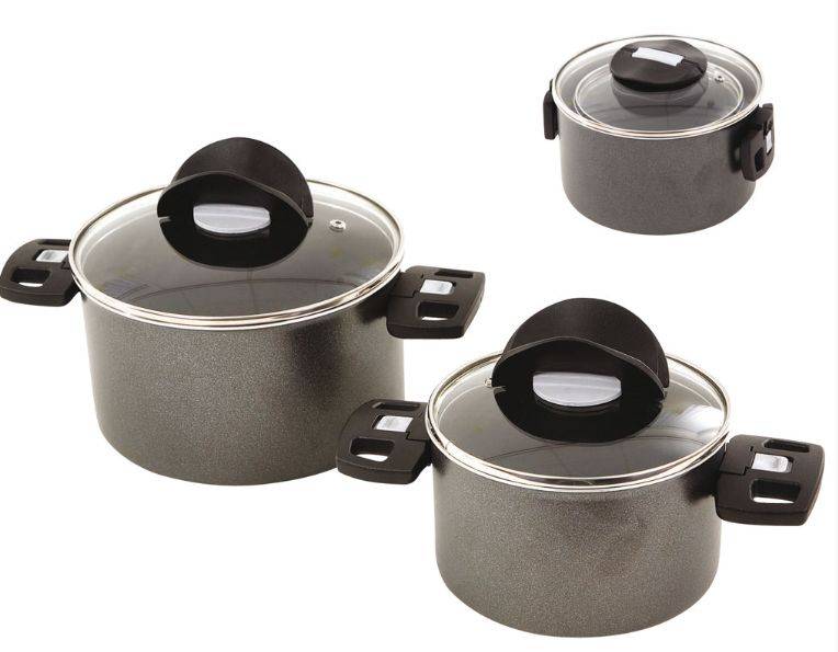Luxe 2-delige nestbare pannenset met slimme wegklapbare grepen en glazen deksels. Stevige kwaliteit door de 3-laags QuartzPlus® coating. Afmetingen: diameter 16cm en 20cm; hoogte 9cm; dikte 2,5mm. Inhoud: 1,8 liter en 2,8 liter. Kleur: metallic zwart.