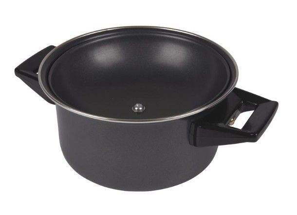 3-Delige carbonstaal kookset bestaande uit 3 kookpannen met anti-aanbaklaag en handgrepen. Afmetingen: diameter 16cm, 18cm en 20cm; hoogte 8,5cm, 9cm en 10cm. Inhoud: 1,7 liter, 2,3 liter en 3,1 liter.