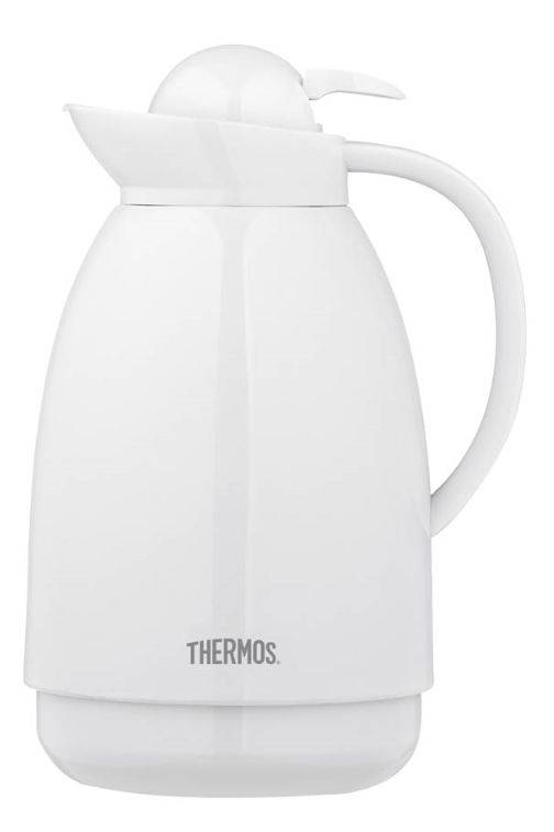 Vacuüm koffiekan, glazen binnenfles en schenkdop met drukknop. Afmetingen (LxBxH): 18x18x26cm. Gewicht: 700 gram. Inhoud: 1 liter. Kleur: wit. Garantie 5 jaar!
