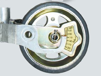 Originele neuswiel met kogeldrukmeter van AL-KO. Door deze geïntegreerde kogeldrukmeter kunt u in een oogopslag zien met wat voor gewicht uw caravan op dat moment op uw kogel drukt. Het wieltje heeft een afmeting van 230x80 mm is is van staal met een massief rubberen band. Het statisch draagvermogen is 300 kg .