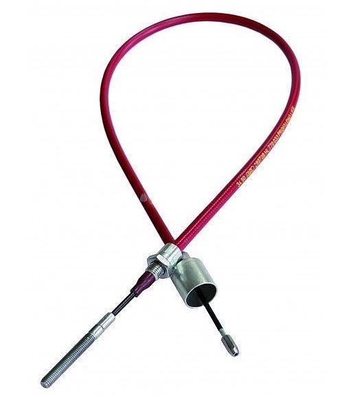 Remkabel van AL-KO, met aan de ene kant Ø8 mm draadeind, en aan de andere kant een persnippel met een 26 mm klok. Let op, Deze remkabels passen niet op BPW, ze passen alleen op AL-KO! De persnippels zijn verschillend, en passen niet in elkaars remkabeloog!