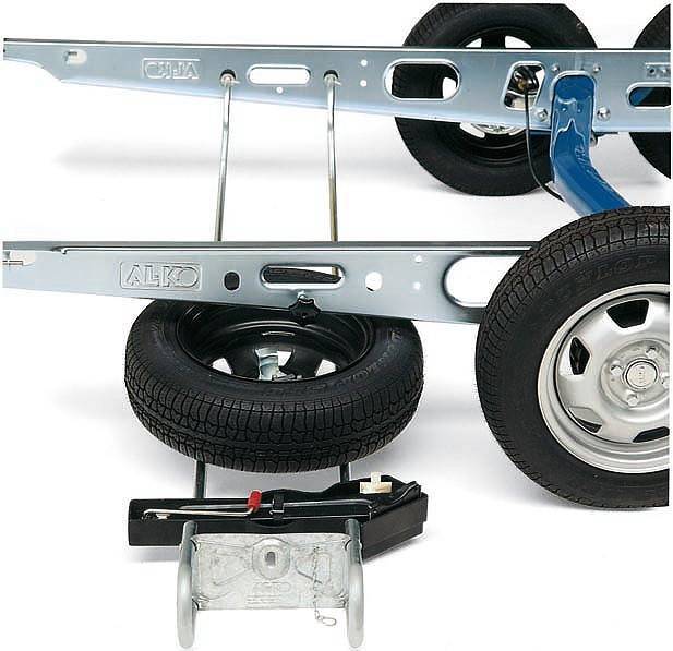 Alle caravans vanaf 1985 met een AL-KO chassis zijn standaard voorzien van montagegaten voor de reservewielhouder. Om de houder te gebruiken eerst de borgketting losmaken en vervolgens stergreep openen en verwijderen. Reservewielhouder met beide handen vastpakken en zover uittrekken dat het reservewiel goed bereikbaar is. Bij een te geringe grondspeling aanhanger eerst met krik omhoog brengen.