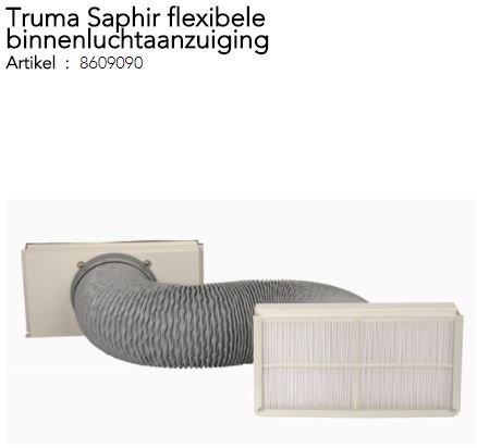 Ruimteluchtaanzuiging voor Saphir. Wanneer de Saphir is ingebouwd in bijvoorbeeld de dubbele vloer of in de bagageruimte van een camper, kan met deze set de lucht aangezogen worden uit de te koelen ruimte.