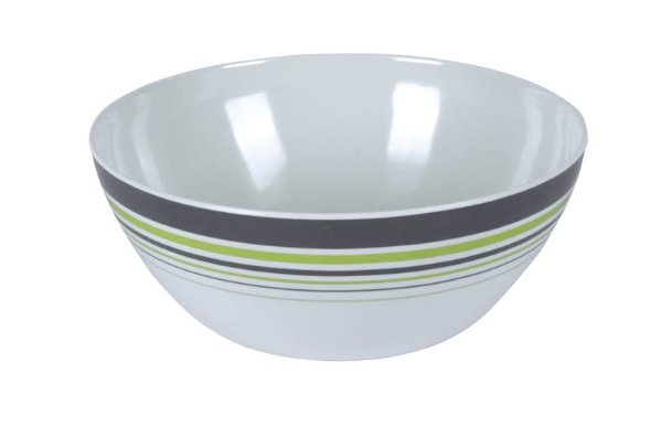 Hoogwaardig 100% melamine slakom: diameter 25cm; hoogte 10cm. Vaatwasmachinebestendig. Vrijwel onbreekbaar en krasvast. Kleur: grijs en groen.