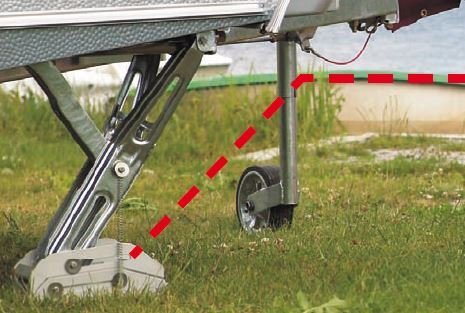 Tijdens het rijden wordt de AL-KO big foot™ door middel van een veer volledig passend tegen de steun gedrukt.