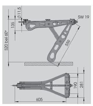 Originele uitdraaisteun van AL-KO, de lengte is 605 mm en de breedte is 190 mm. Maximaal statisch draagvermogen is 1250 kg. Deze uitdraaisrteun is toepasbaar op bijna alle caravantypes, en kan eventueel ook onder een aanhangwagen gemonteerd worden.