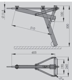 Originele uitdraaisteun van AL-KO, de lengte is 505 mm en de breedte is 190 mm. Maximaal statisch draagvermogen is 800 kg. Deze uitdraaisteun is toepasbaar op bijna alle caravantypes, en kan eventueel ook onder een aanhangwagen gemonteerd worden.