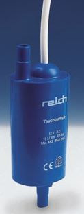Reich dompelpomp op 12 volt.Geeft 15 liter p/m. Voor dompelpompen wordt een waterslang van 10 mm gebruikt.